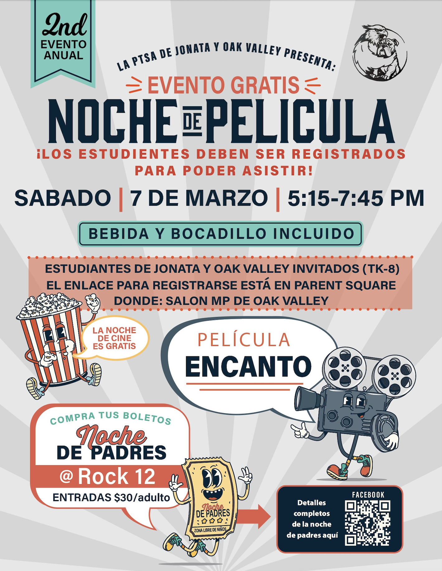 🎬Join us for the 2nd Annual Jonata–Oak Valley PTSA Movie Night, a FREE evening for Jonata & Oak Valley students and their TK–8th grade siblings, featuring ✨ Encanto ✨
